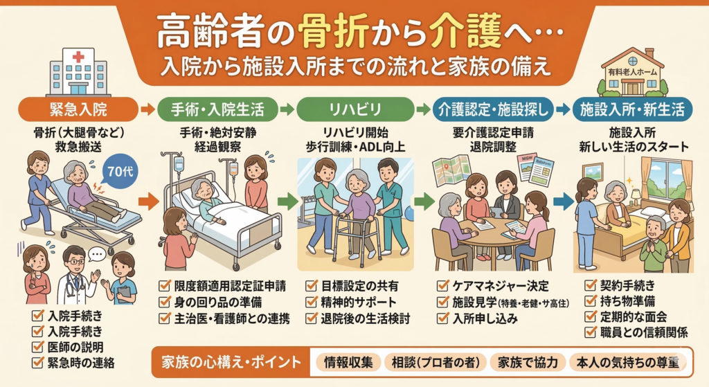 【家族のための備え】高齢者が「元気」から「介護」へ変わるきっかけと、病院から施設入所までの完全ガイド